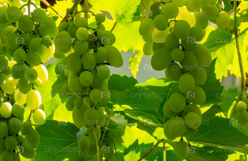 Спелый зеленый виноград в винограднике. Виноград зеленый вкус сладкий растущий натуральный. Зеленый виноград на лозе в саду