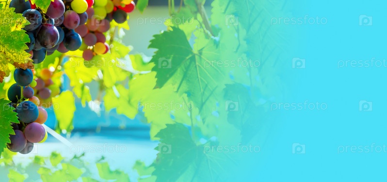 Ветка виноградных листьев на фоне ясного голубого неба. Скопируйте пространство