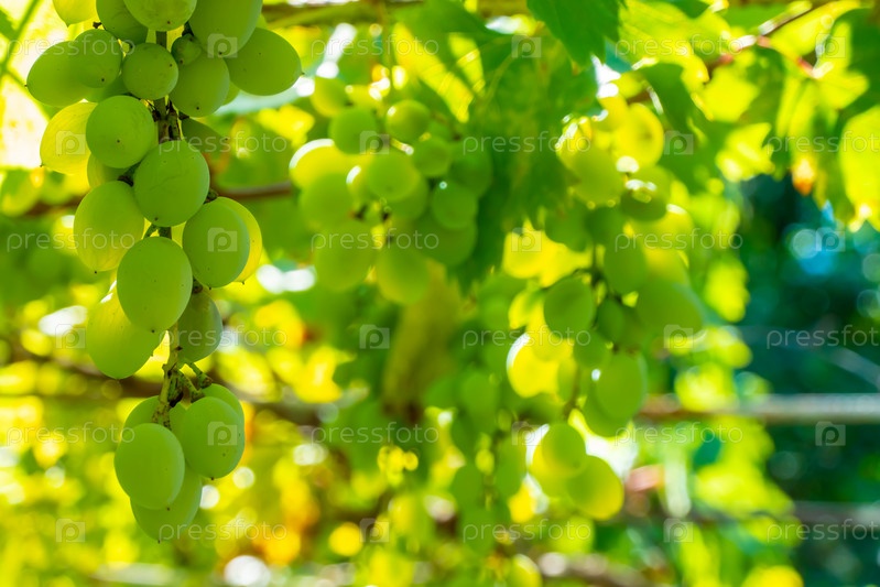Спелый зеленый виноград в винограднике. Виноград зеленый вкус сладкий растущий натуральный. Зеленый виноград на лозе в саду