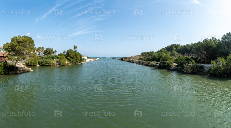 Панорамный вид, на мост Англичан, майорка, большой канал, выход пресной воды к средиземному морю, залив алькудия