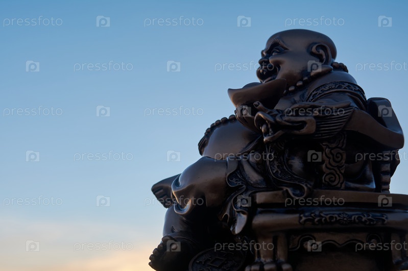 Фигура Будды под лунным светом на скале в море