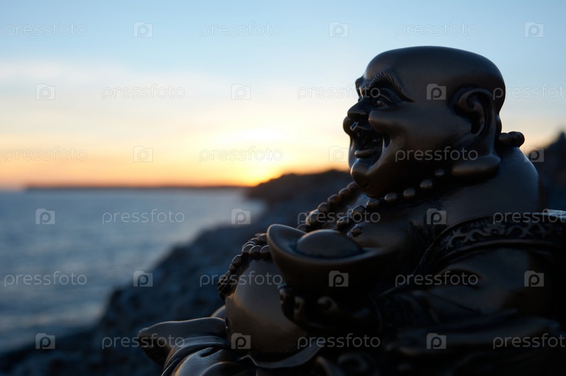 Фигура Будды под лунным светом на скале в море
