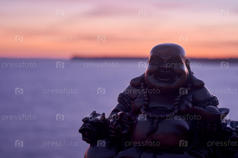 Фигура Будды под лунным светом на скале в море