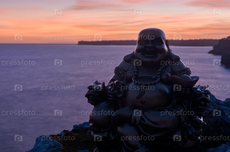 Фигура Будды под лунным светом на скале в море