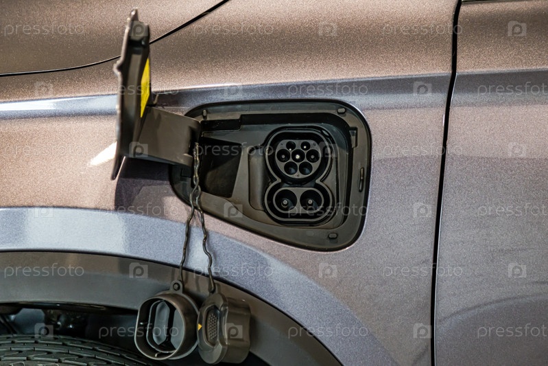 Зарядка электромобиля на электрической заправке