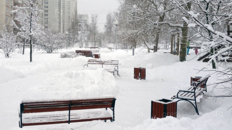 Городской парк после снегопада днем