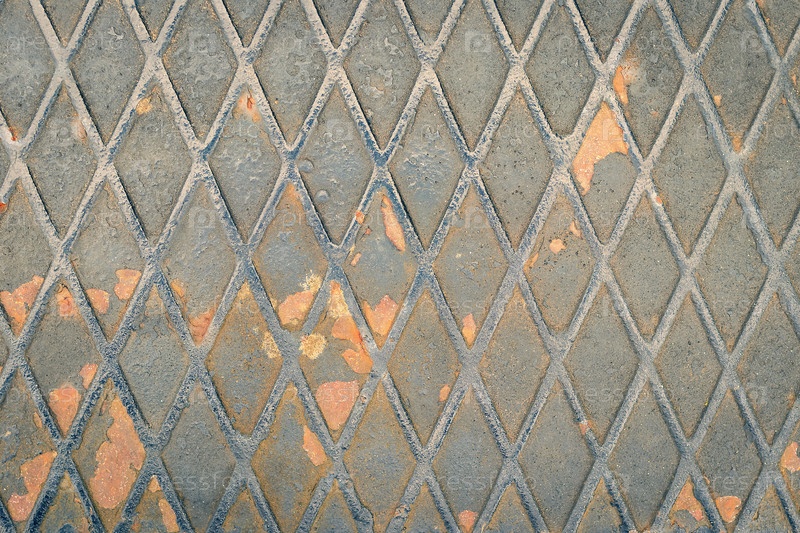 Текстура и рисунок изношенной поверхности старого металла с пятнами и полосами ржавчины в форме ромба