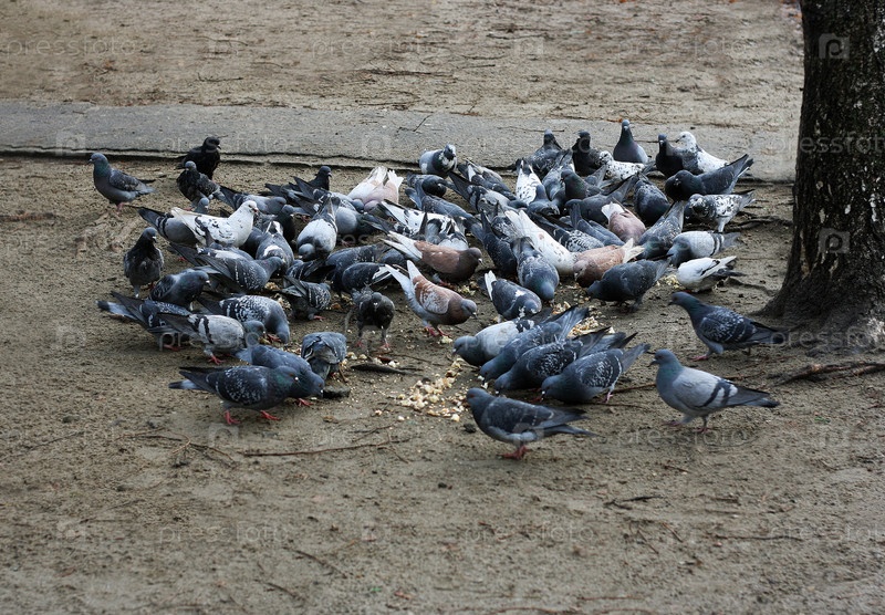 Голубиная стая ест