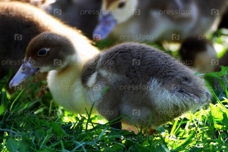 Цыпленок утки стоит в густой траве