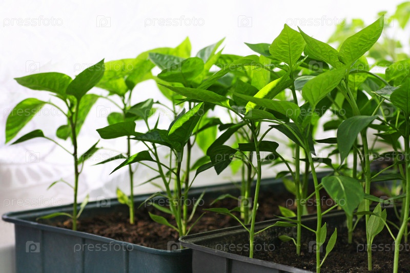 Рассада перцев в ящиках