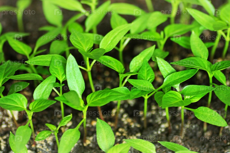 Зеленые ростки перца, выращенные из семян в домашних условиях