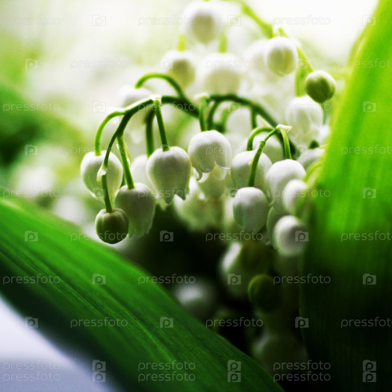 Небольшой букет ландышей с белыми цветами и зелеными листьями