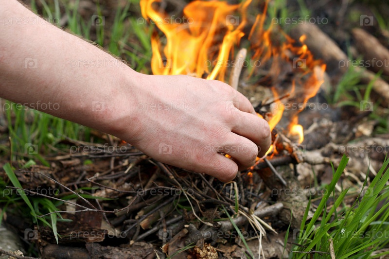 Разжигание огня в лесу