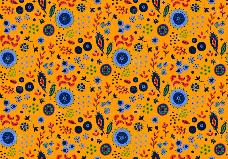 Бесшовный узор с фантазийными цветами, этнический вращающийся повторяющийся дизайн ткани и плитки, натуральные обои, иллюстрация завитка цветочного декора. Пейсли печатает рисованные элементы. Домашний декор