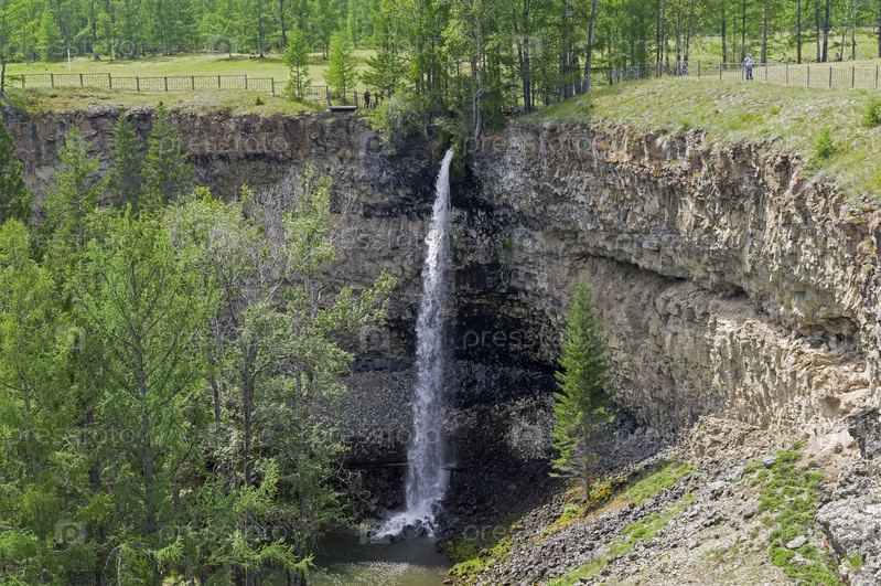 Водопад Малый Жомболок. Непосредственно перед впадением одной из проток реки Жомболок в Оку Саянскую. Место считается священным у местных жителей. Бурятия, Сибирь