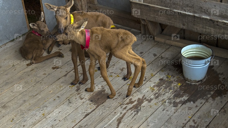 Новорожденные лосята на лосиной ферме. Сумароковская ферма, Костромская область, Россия
