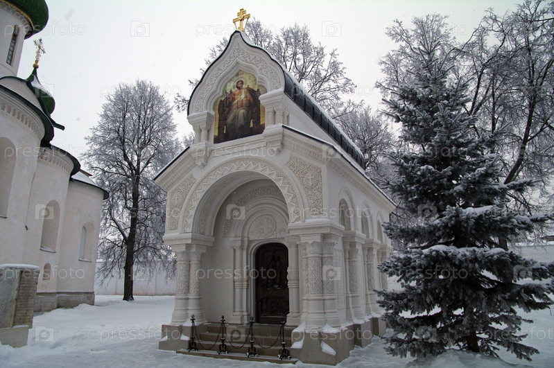 Усыпальница Дмитрия Михайловича Пожарского в Спасо-Евфимиевом монастыре в Суздале, Россия. Облачный день в декабре