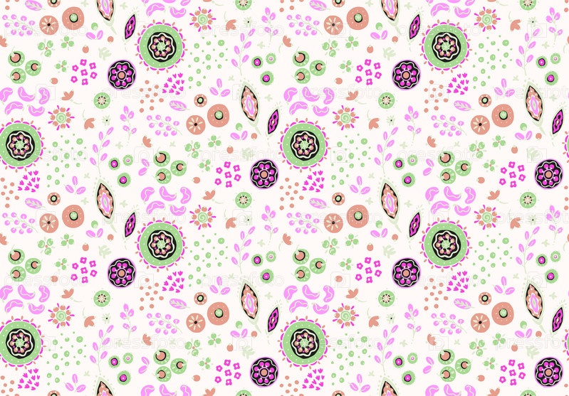 Бесшовный узор с фантазийными цветами, этнический вращающийся повторяющийся дизайн ткани и плитки, натуральные обои, иллюстрация завитка цветочного декора. Пейсли печатает рисованные элементы. Домашний декор