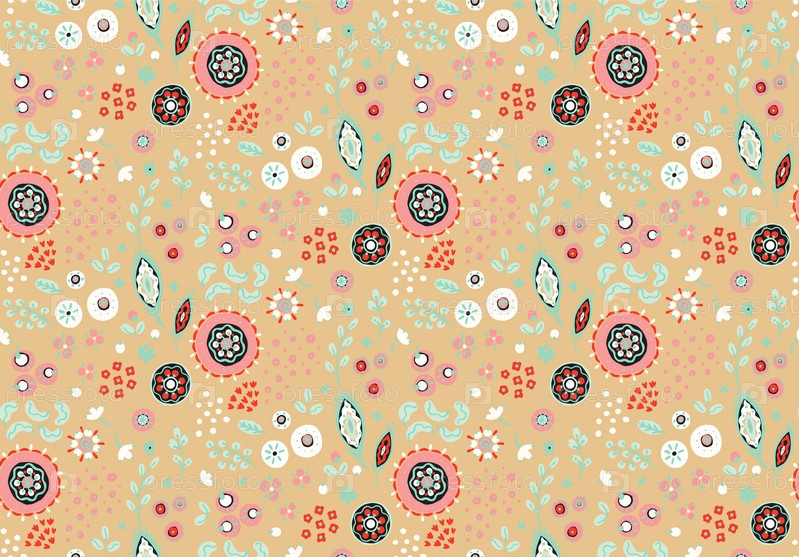 Бесшовный узор с фантазийными цветами, этнический вращающийся повторяющийся дизайн ткани и плитки, натуральные обои, иллюстрация завитка цветочного декора. Пейсли печатает рисованные элементы. Домашний декор