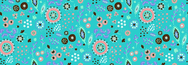 Бесшовный узор с фантазийными цветами, этнический вращающийся повторяющийся дизайн ткани и плитки, натуральные обои, иллюстрация завитка цветочного декора. Пейсли печатает рисованные элементы. Домашний декор