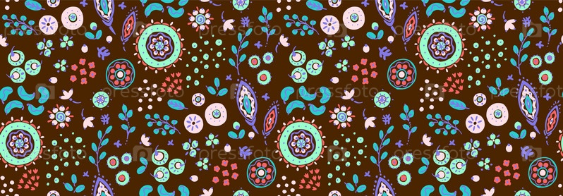Бесшовный узор с фантазийными цветами, этнический вращающийся повторяющийся дизайн ткани и плитки, натуральные обои, иллюстрация завитка цветочного декора. Пейсли печатает рисованные элементы. Домашний декор