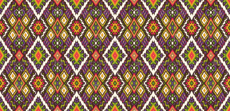 Икат геометрический фольклорный орнамент с бриллиантами. Племенная этническая векторная текстура. Бесшовный полосатый узор в стиле ацтеков. Народная вышивка. Индийский, скандинавский, цыганский, мексиканский, африканский ковер