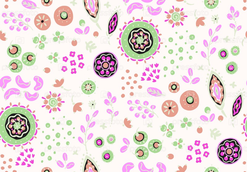 Бесшовный узор с фантазийными цветами, этнический вращающийся повторяющийся дизайн ткани и плитки, натуральные обои, иллюстрация завитка цветочного декора. Пейсли печатает рисованные элементы. Домашний декор