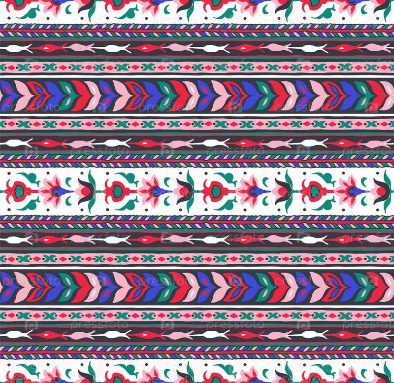 Геометрический фольклорный орнамент икат. Племенная этническая векторная текстура. Бесшовный полосатый узор в стиле ацтеков. Рисунок племенной вышивки. Индийский, скандинавский, цыганский, мексиканский, народный узор