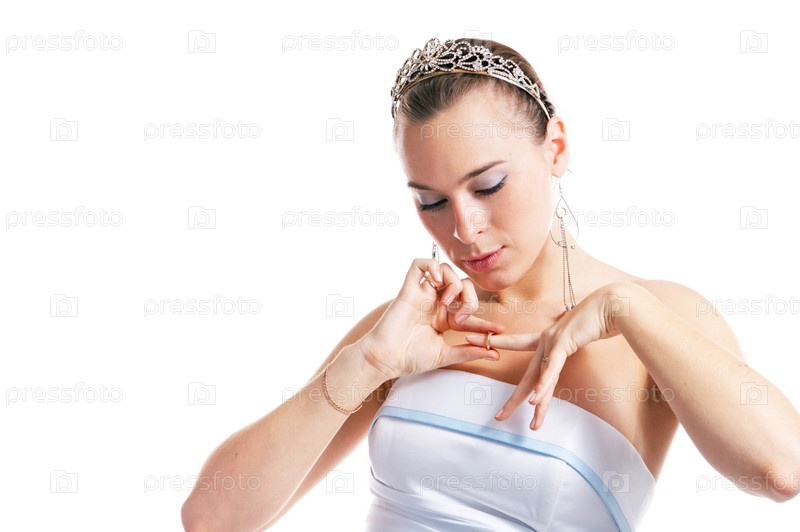 Портрет красивой женщины с украшением на белом фоне