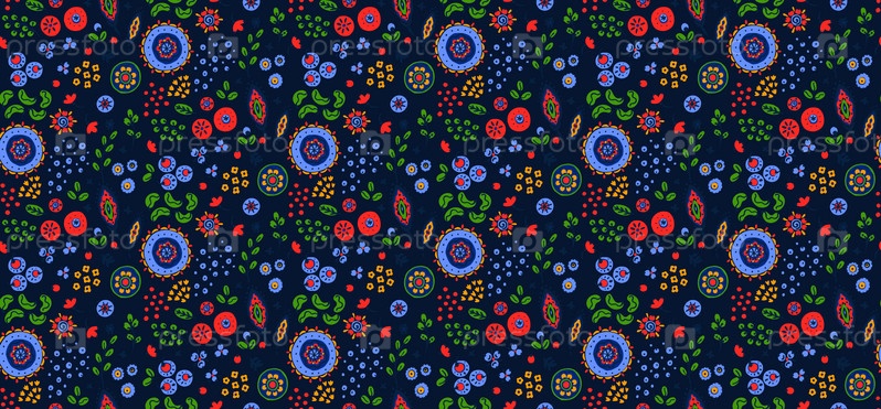 Бесшовный узор с фантазийными цветами, этнический вращающийся повторяющийся дизайн ткани и плитки, натуральные обои, иллюстрация завитка цветочного декора. Пейсли печатает рисованные элементы. Домашний декор