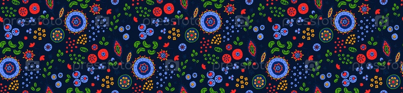 Бесшовный узор с фантазийными цветами, этнический вращающийся повторяющийся дизайн ткани и плитки, натуральные обои, иллюстрация завитка цветочного декора. Пейсли печатает рисованные элементы. Домашний декор