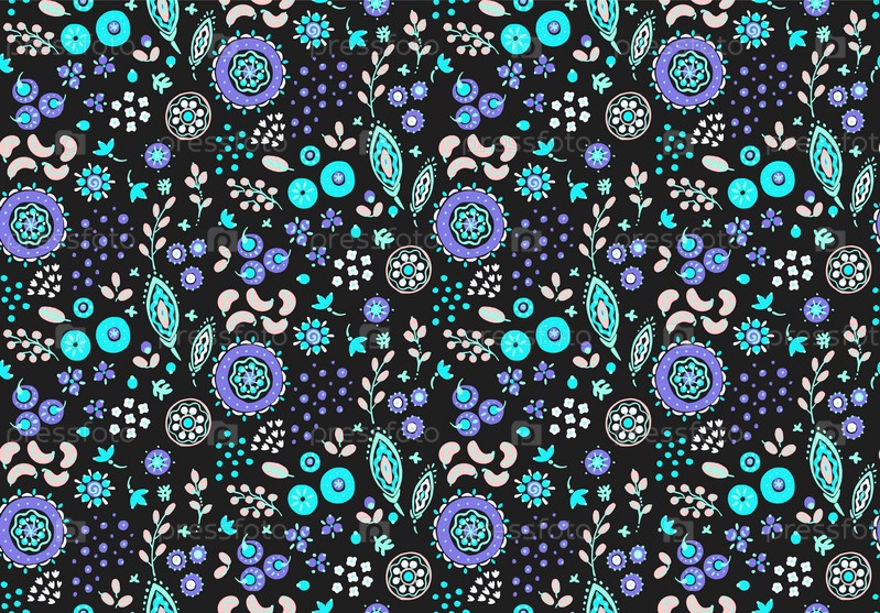 Бесшовный узор с фантазийными цветами, этнический вращающийся повторяющийся дизайн ткани и плитки, натуральные обои, иллюстрация завитка цветочного декора. Пейсли печатает рисованные элементы. Домашний декор