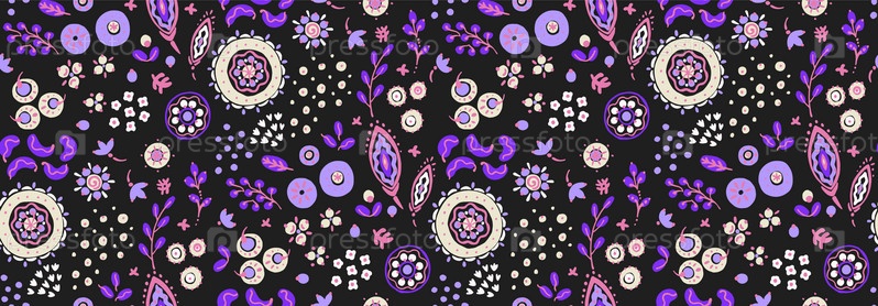 Бесшовный узор с фантазийными цветами, этнический вращающийся повторяющийся дизайн ткани и плитки, натуральные обои, иллюстрация завитка цветочного декора. Пейсли печатает рисованные элементы. Домашний декор