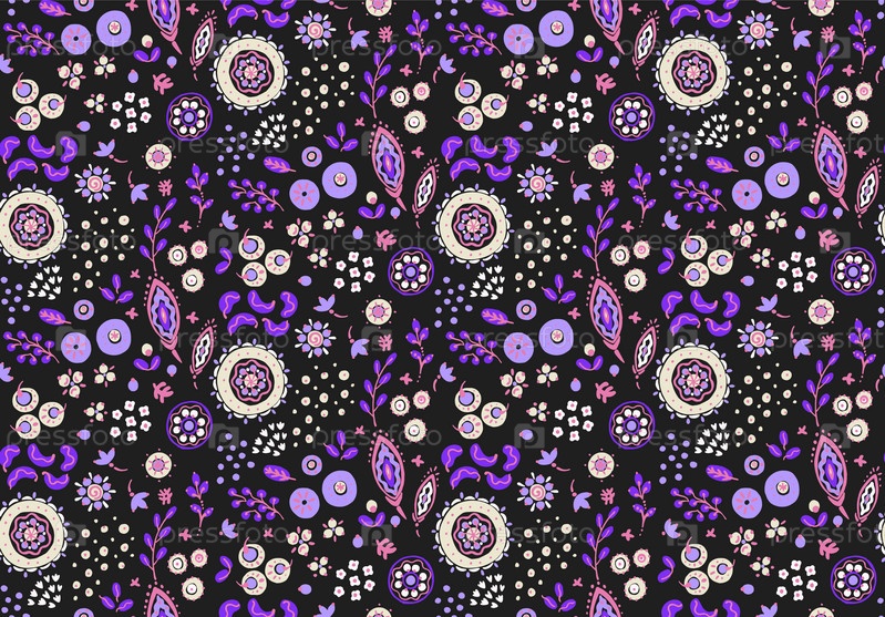 Бесшовный узор с фантазийными цветами, этнический вращающийся повторяющийся дизайн ткани и плитки, натуральные обои, иллюстрация завитка цветочного декора. Пейсли печатает рисованные элементы. Домашний декор