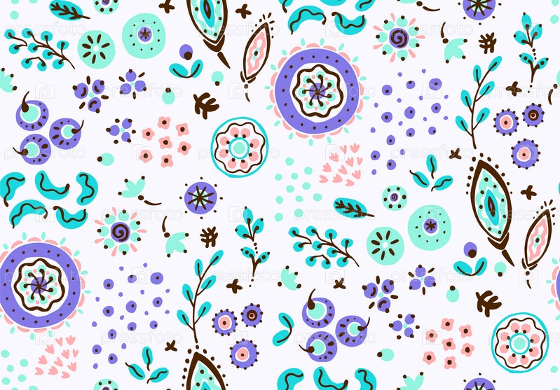 Бесшовный узор с фантазийными цветами, этнический вращающийся повторяющийся дизайн ткани и плитки, натуральные обои, иллюстрация завитка цветочного декора. Пейсли печатает рисованные элементы. Домашний декор