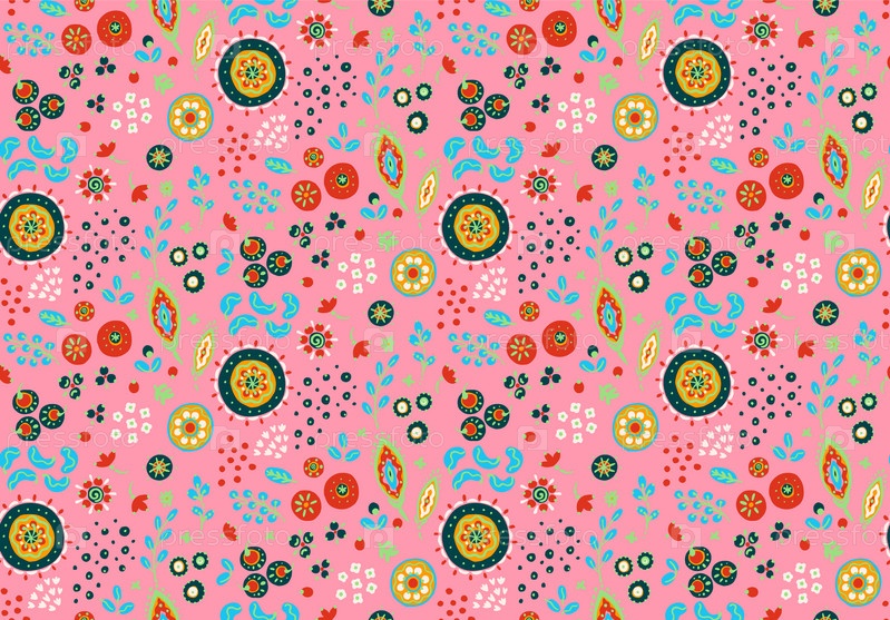 Бесшовный узор с фантазийными цветами, этнический вращающийся повторяющийся дизайн ткани и плитки, натуральные обои, иллюстрация завитка цветочного декора. Пейсли печатает рисованные элементы. Домашний декор