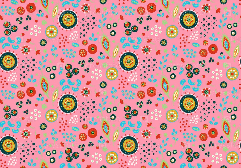 Бесшовный узор с фантазийными цветами, этнический вращающийся повторяющийся дизайн ткани и плитки, натуральные обои, иллюстрация завитка цветочного декора. Пейсли печатает рисованные элементы. Домашний декор