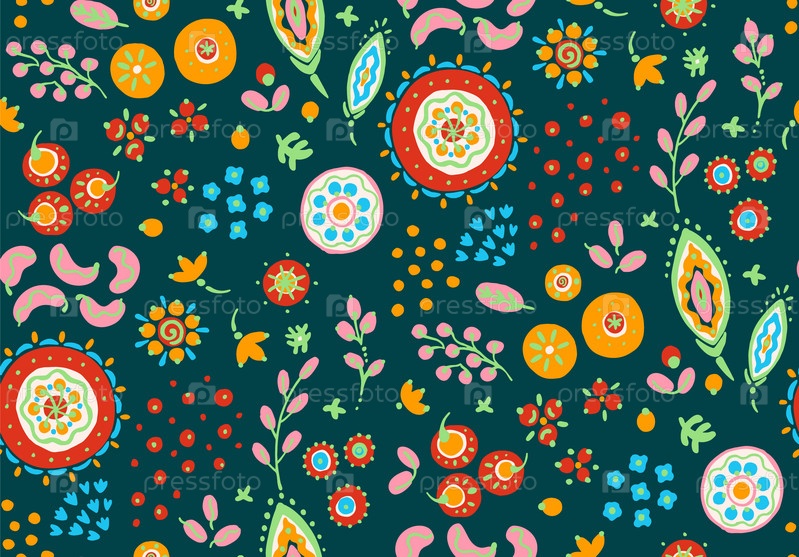 Бесшовный узор с фантазийными цветами, этнический вращающийся повторяющийся дизайн ткани и плитки, натуральные обои, иллюстрация завитка цветочного декора. Пейсли печатает рисованные элементы. Домашний декор