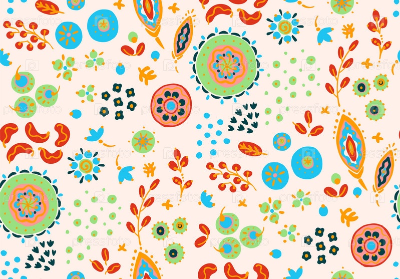 Бесшовный узор с фантазийными цветами, этнический вращающийся повторяющийся дизайн ткани и плитки, натуральные обои, иллюстрация завитка цветочного декора. Пейсли печатает рисованные элементы. Домашний декор