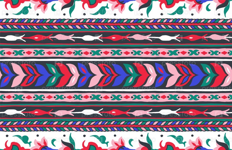 Геометрический фольклорный орнамент икат. Племенная этническая векторная текстура. Бесшовный полосатый узор в стиле ацтеков. Рисунок племенной вышивки. Индийский, скандинавский, цыганский, мексиканский, народный узор