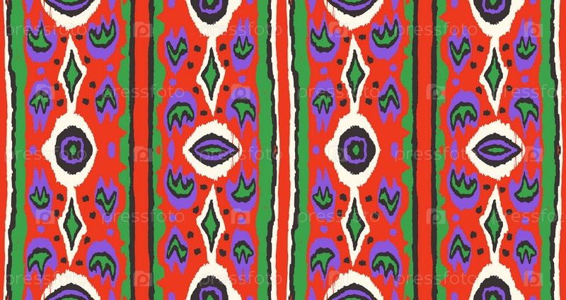 Икат геометрический фольклорный орнамент с бриллиантами. Племенная этническая векторная текстура. Бесшовный полосатый узор в стиле ацтеков. Народная вышивка. Индийский, скандинавский, цыганский, мексиканский, африканский ковер