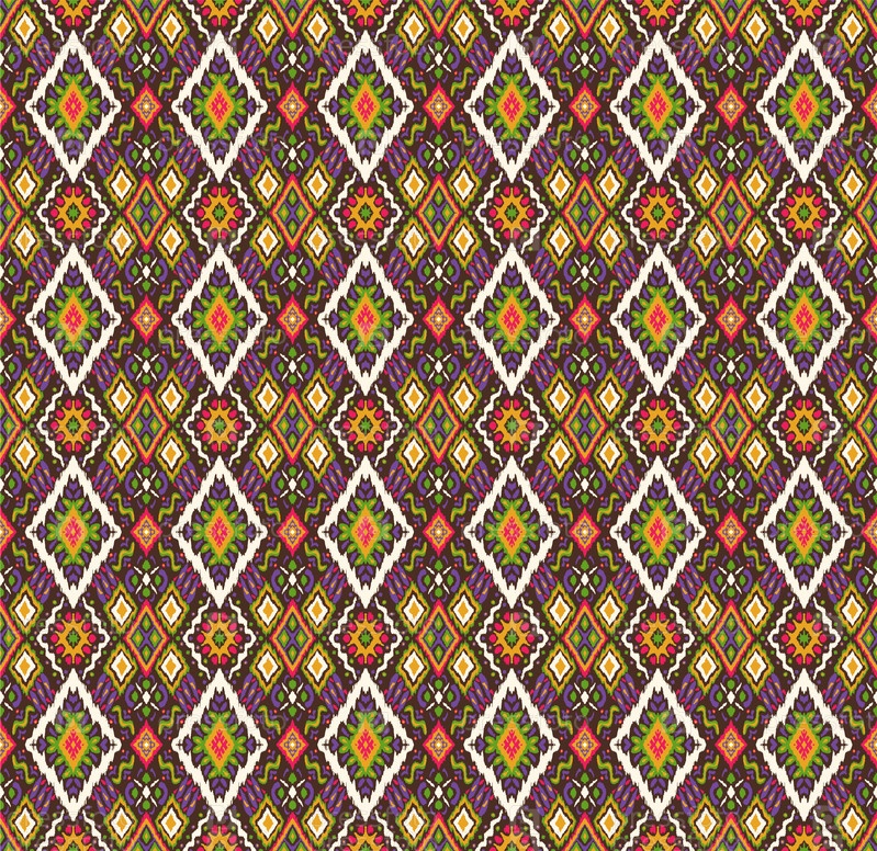 Икат геометрический фольклорный орнамент с бриллиантами. Племенная этническая векторная текстура. Бесшовный полосатый узор в стиле ацтеков. Народная вышивка. Индийский, скандинавский, цыганский, мексиканский, африканский ковер