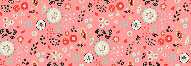 Бесшовный узор с фантазийными цветами, этнический вращающийся повторяющийся дизайн ткани и плитки, натуральные обои, иллюстрация завитка цветочного декора. Пейсли печатает рисованные элементы. Домашний декор