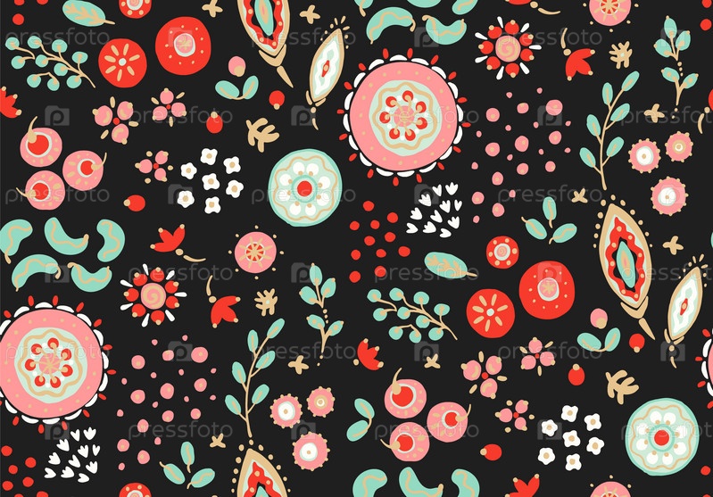 Бесшовный узор с фантазийными цветами, этнический вращающийся повторяющийся дизайн ткани и плитки, натуральные обои, иллюстрация завитка цветочного декора. Пейсли печатает рисованные элементы. Домашний декор