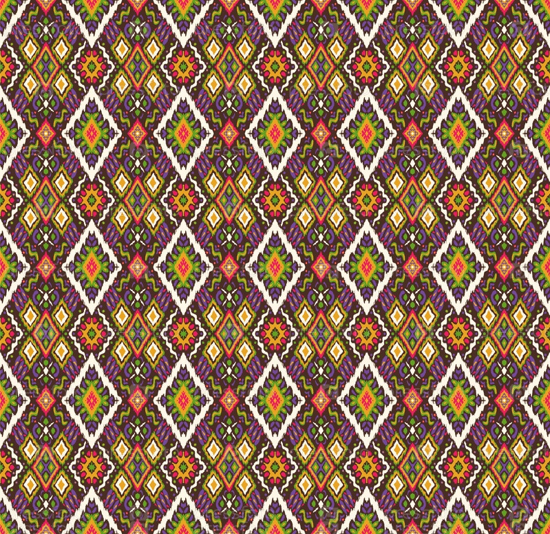Икат геометрический фольклорный орнамент с бриллиантами. Племенная этническая векторная текстура. Бесшовный полосатый узор в стиле ацтеков. Народная вышивка. Индийский, скандинавский, цыганский, мексиканский, африканский ковер