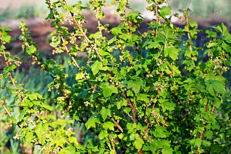 Низкий куст смородины весной