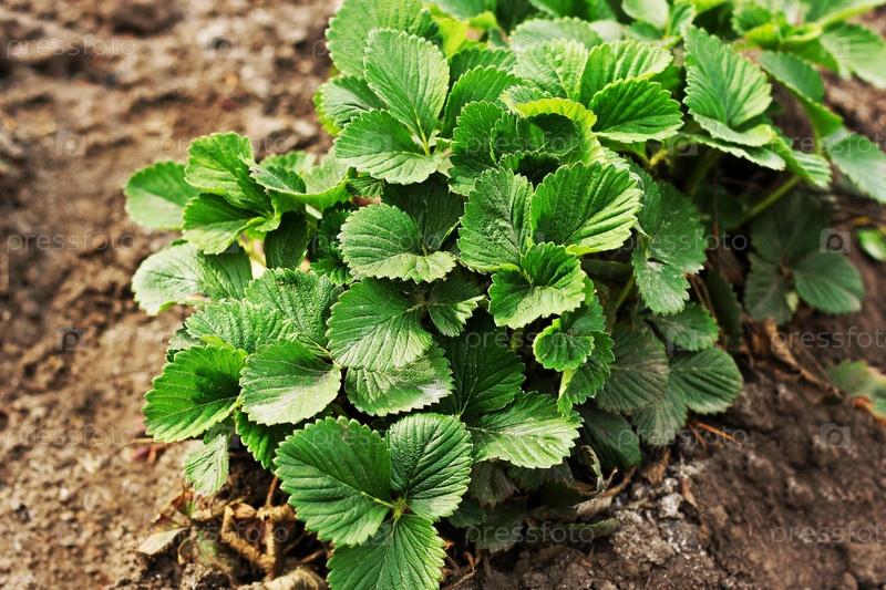 Куст клубники, посаженный в землю