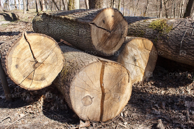 Большие бревна, подготовленные для распиловки на дрова. открытый дневной свет