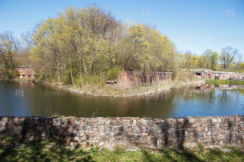 Старая заброшенная крепость в солнечный весенний день