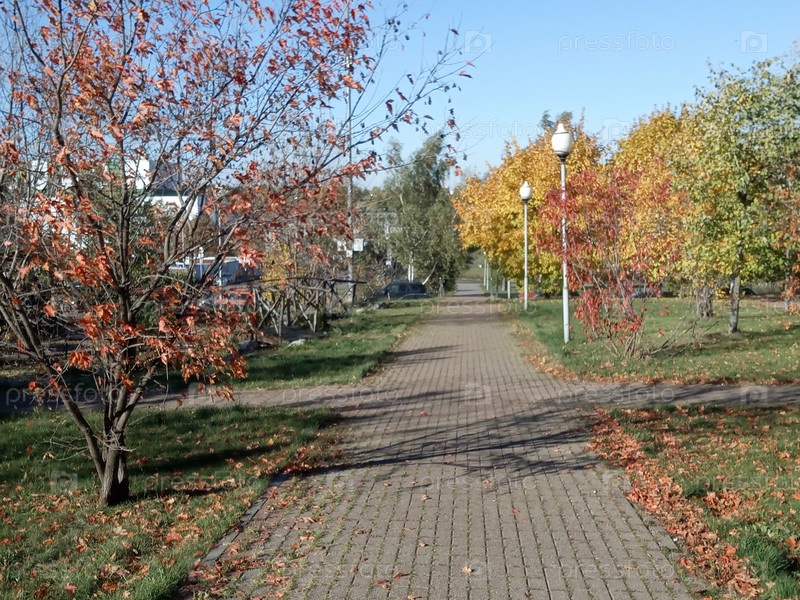 Осень в городском парке в сухой солнечный день